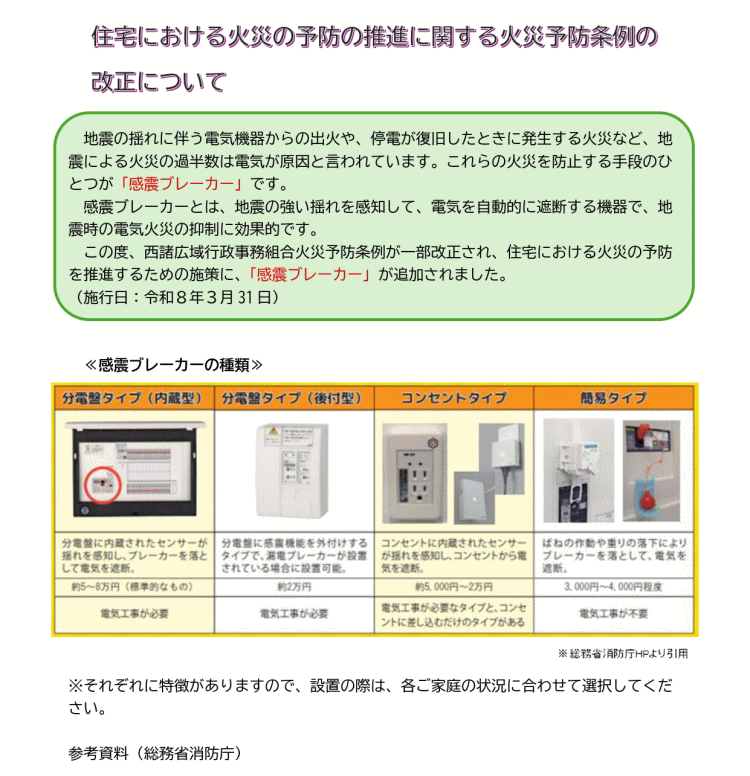 住宅における火災の予防の推進に関する火災予防条例の 改正について